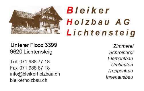 Bleiker Holzbau AG, Unterer Flooz 3399, 9620 Lichtensteig